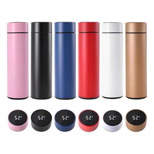 - Fabricado completamente en acero inoxidable 304, ideal para mantener la temperatura de tus bebidas por más tiempo. Cuenta con una tapa a rosca que incluye un sensor LED táctil en la parte superior, el cual muestra la temperatura actual del líquido con solo apoyarlo con el dedo.